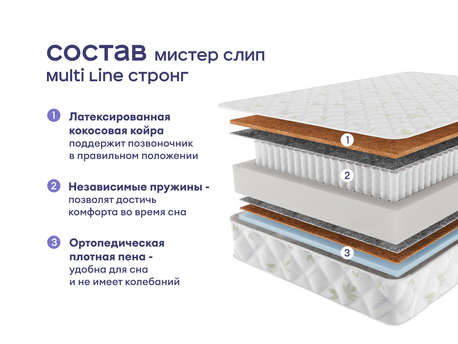 Практичный устойчивый матрас с двумя уровнями жёсткости и усиленной поддержкой. Модель создана для комфортного сна с учётом анатомии тела. Усиленный пружинный блок с 1000 независимых пружин на спальное место и натуральные наполнители обеспечивают надёжную поддержку и долговечность, выдерживая нагрузку до 150 кг на спальное место.