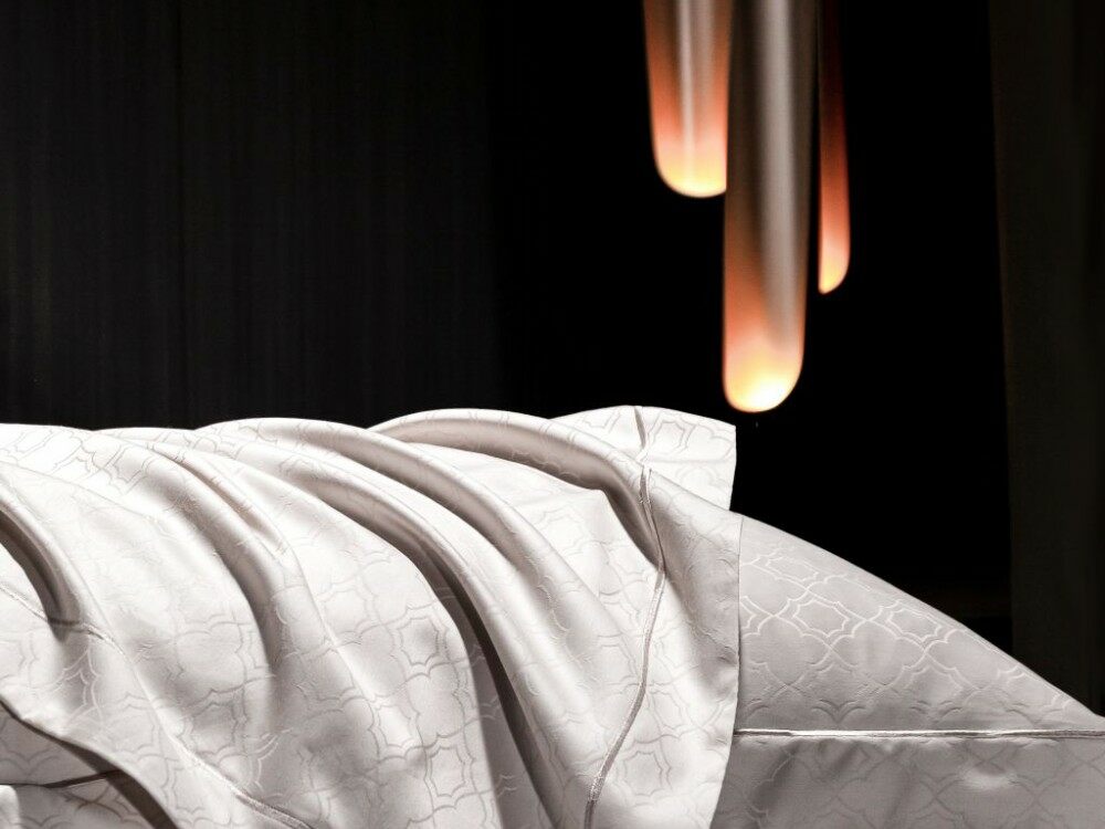 Новая серия из хлопкового жаккарда выполнена из прочной ткани с благородным блеском в классическом пудрово-бежевом цвете. Лаконичный рисунок ткани будет уместно смотеться как в классическом интерьере, так и в минимализме.