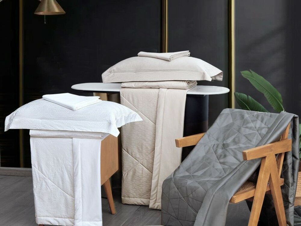 Воздушные и лёгкие одеяла из хлопкового жаккарда с наполнителем из тенсела и искусственного шелка соединяют в себе пластичность и благородный блеск египетского хлопка, мягкость и комфорт тенсела. Отлично впитывают и быстро испаряют влагу, великолепно пропускают воздух - "дышат". Одеяла из египетского хлопка с наполнителем из тенсела и искусственного шелка создают натуральную защиту от бактерий, что подходит для людей с чувствительной кожей.