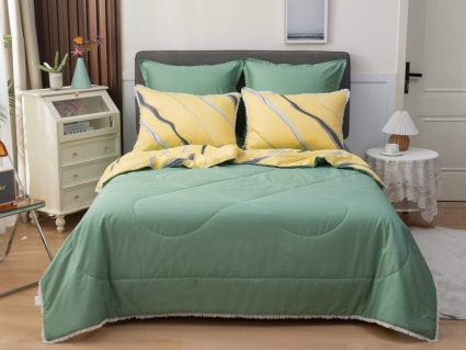 В комплекты комфортеров с одеялом Бернадетт входят наволочки, простыня и легкое всесезонное одеяло. Оцените это современное и очень удобное решение, которое идеально подходит тем, кто не любит возиться с пододеяльниками.
