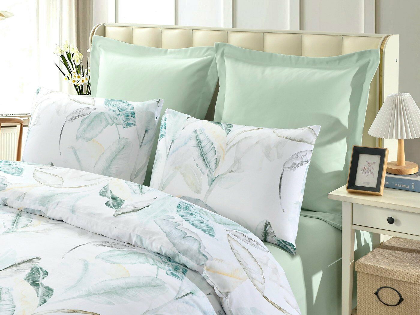 Пошив: пододеяльник на пуговицах, наволочки с клапаном.