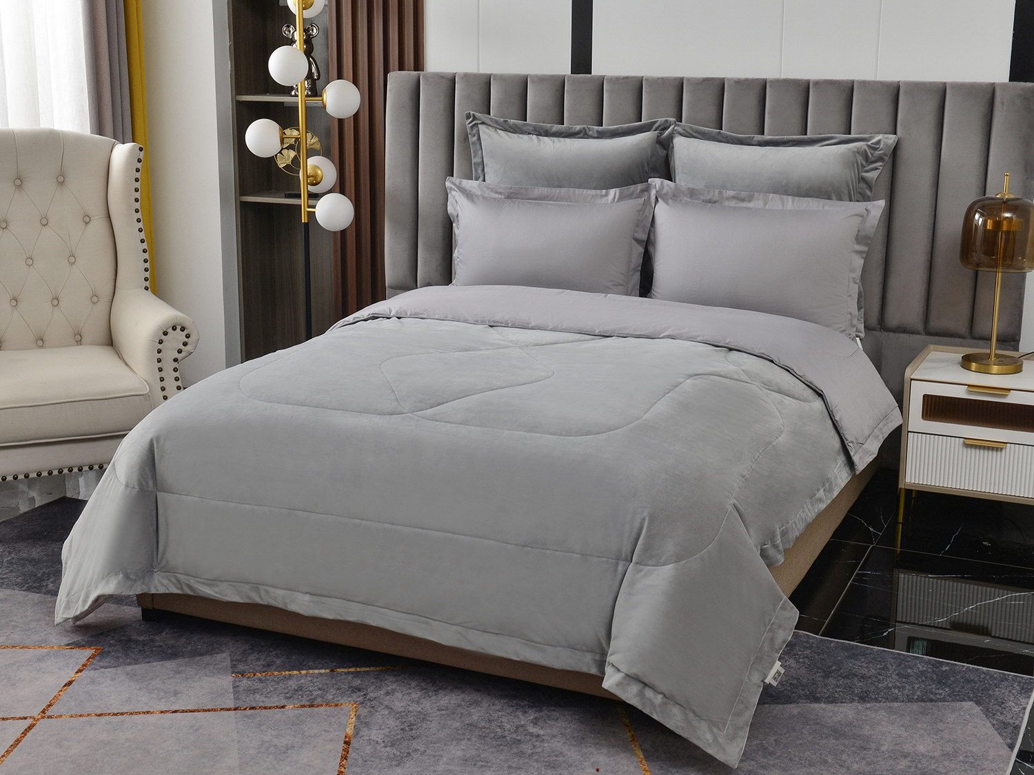 Изготовленный из качественной вискозы и мягкого хлопка трендовых цветов, комплект создаёт приятное ощущение на коже. Его экологичное наполнение из 100% эковолокна обеспечивает гипоаллергенные свойства, подарив вам спокойные и уютные ночи.