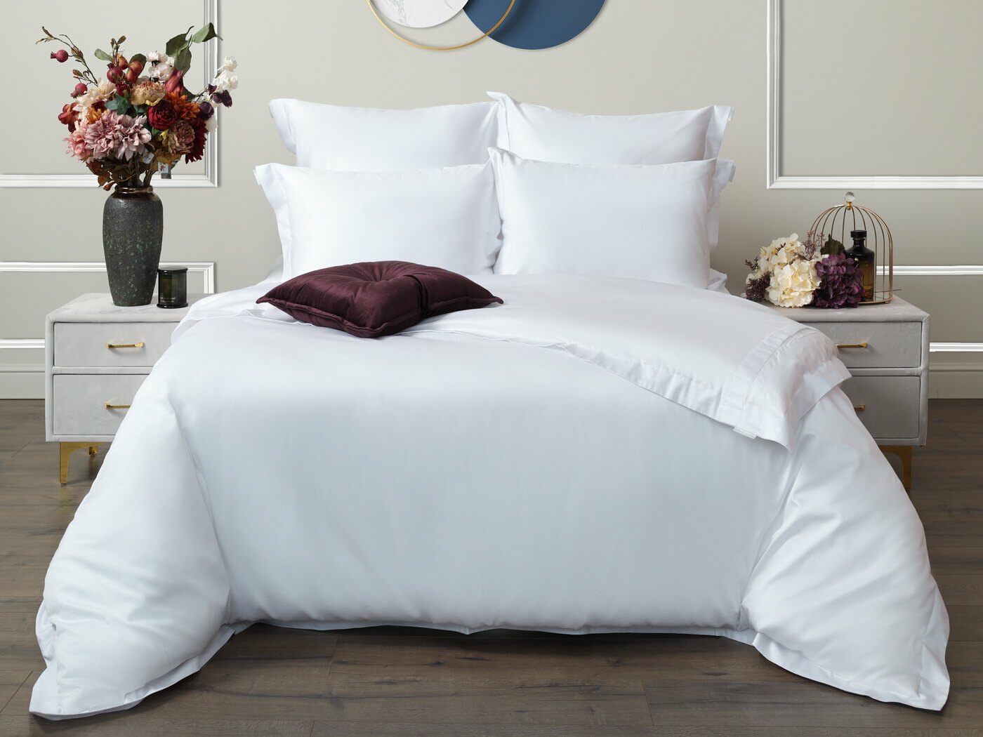 Натуральный состав из 100%-го хлопка обеспечивает гипоаллергенные свойства материала, он охлаждает в жаркую погоду и согревает в холодное время года. Мако-сатин плотностью 300ТС- является тканью класса люкс.