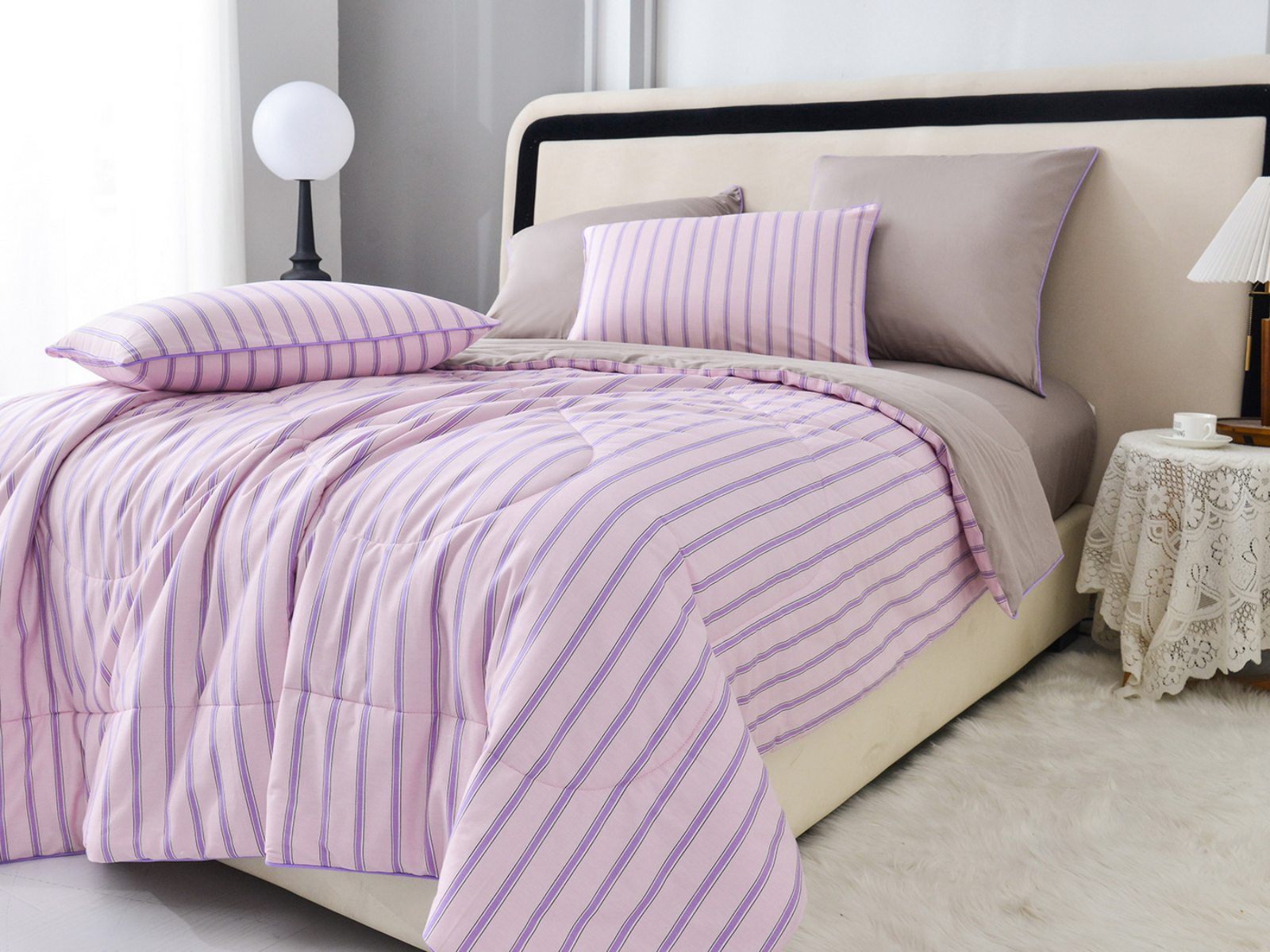 Особенность: двусторонняя модель, наволочки и одеяла декорированы кантом.