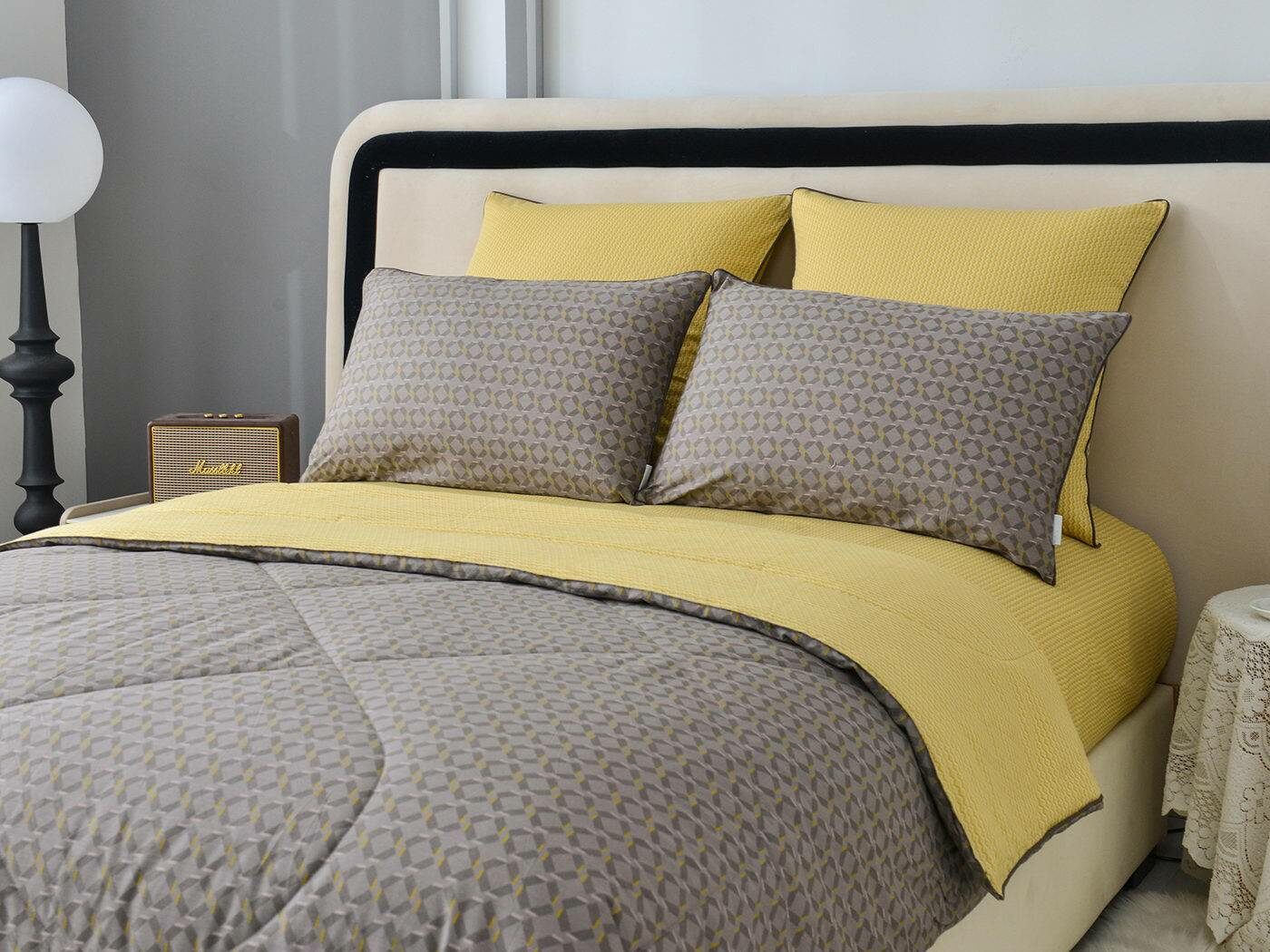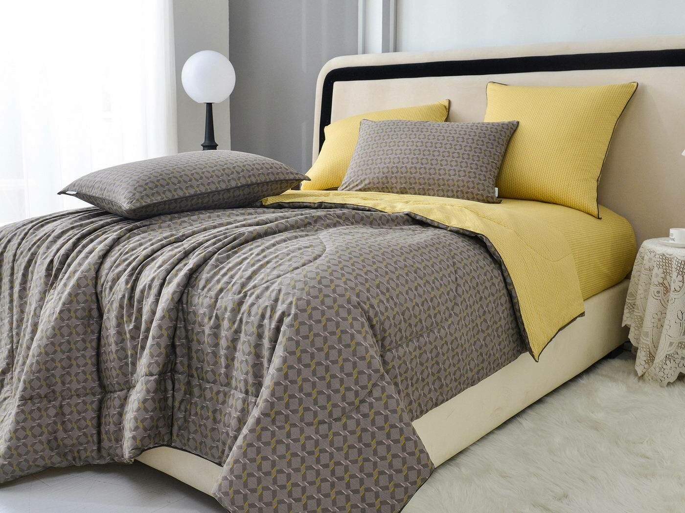 Особенность: двусторонняя модель, наволочки и одеяла декорированы кантом.