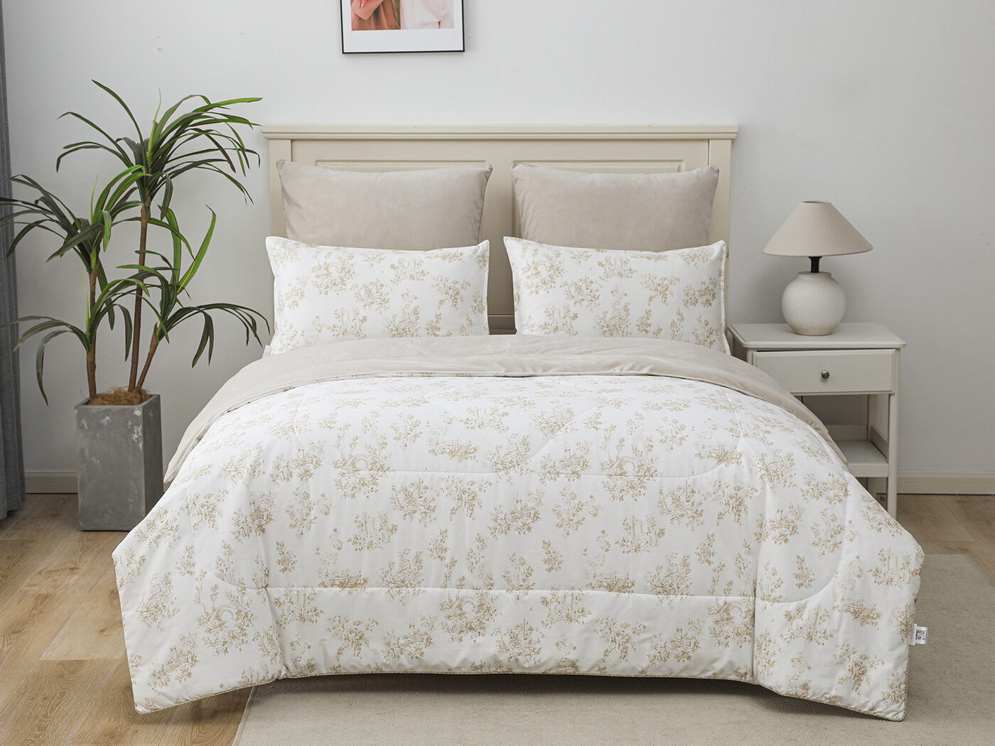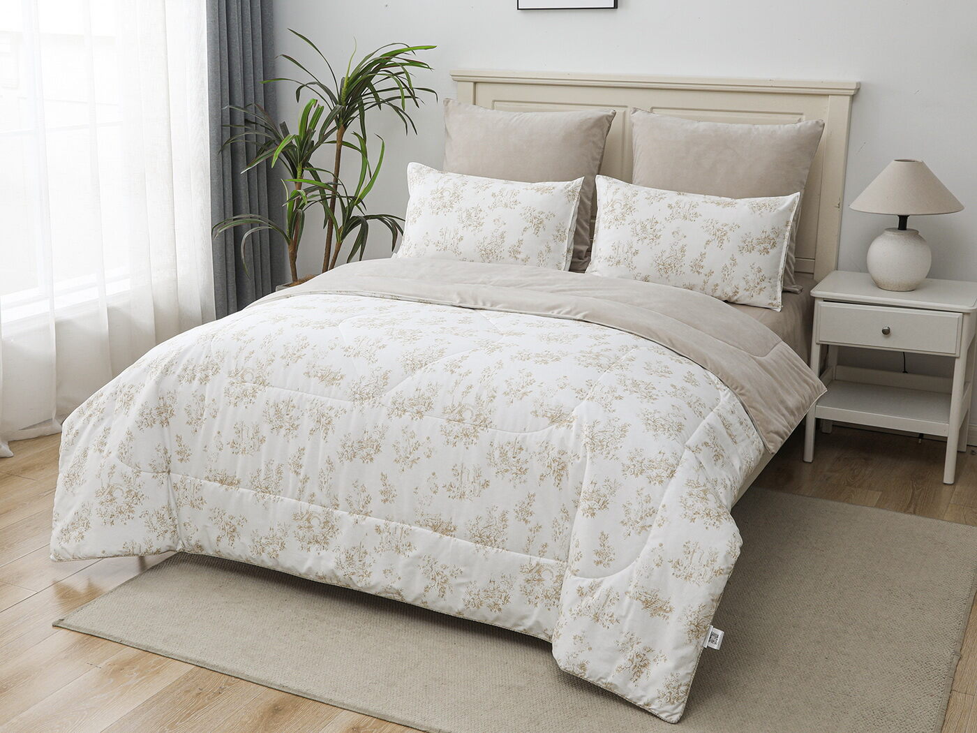 Обратная сторона одеяла – принтованный сатин натуральный хлопковый материал. На ощупь нежная и шелковистая, при этом комфортная и прочная ткань.