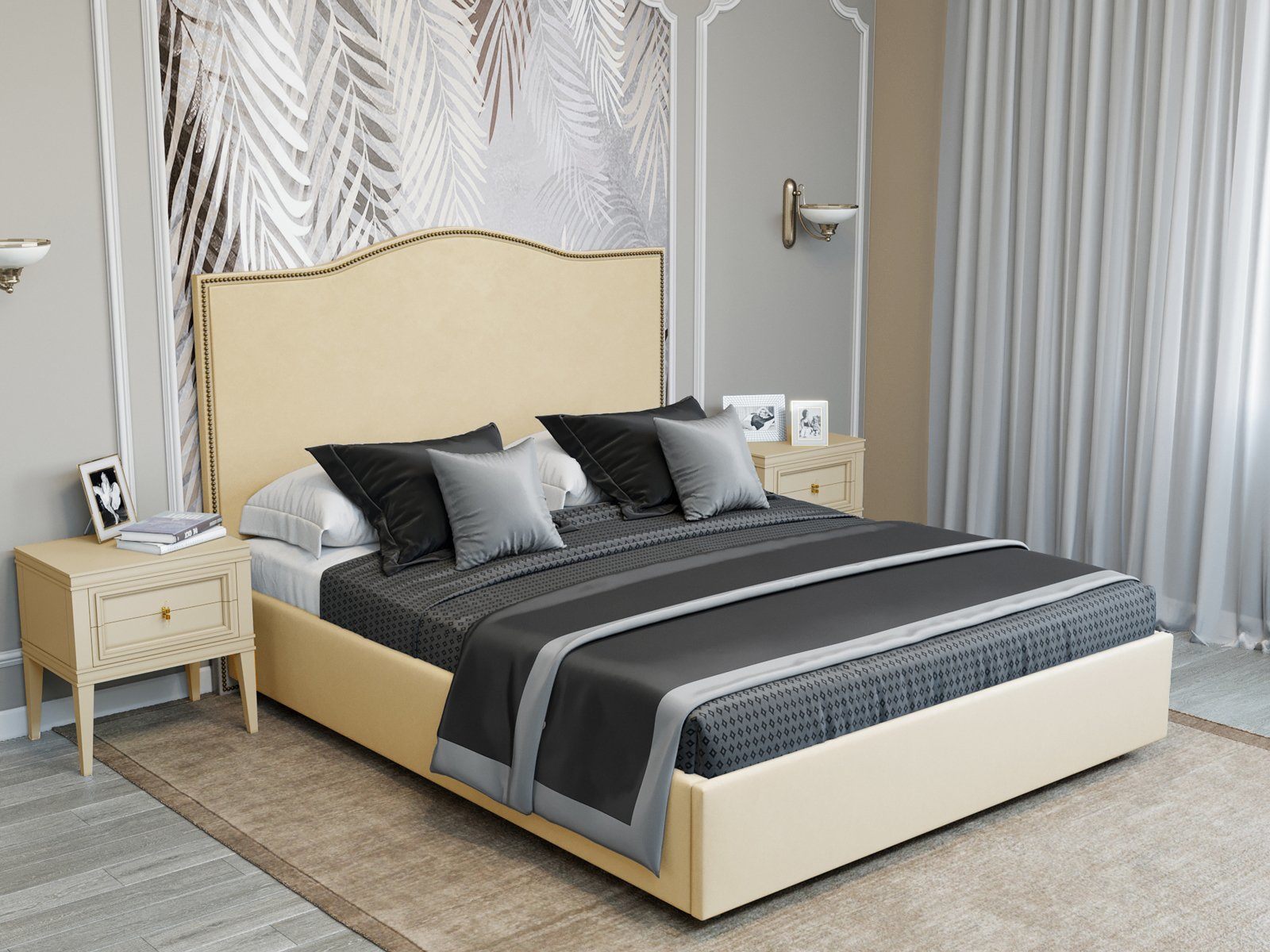Кровать Сальвадор с п/м - стильная, элегантная модель создаст особенную атмосферу вашей спальни. Линия изгиба изголовья придает кровати утонченность, а отделка металлическими гвоздиками добавляет шарма.