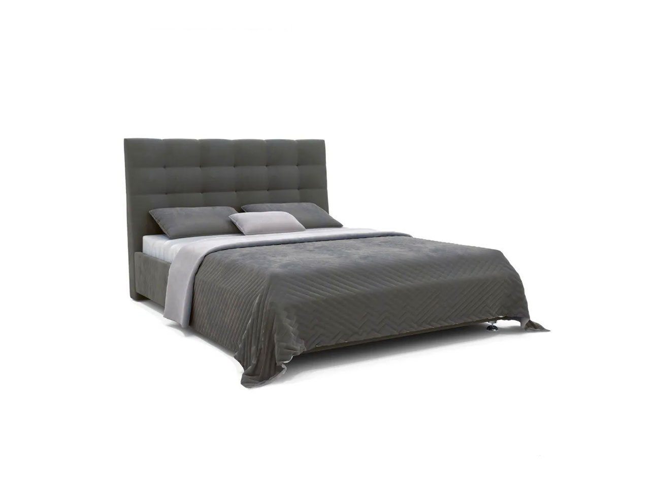 Современная модель среди интерьерных кроватей. Оригинальный рельеф изголовья, выполненный в виде квадратов с декоративной строчкой задает определенный ритм всему интерьеру спальни.