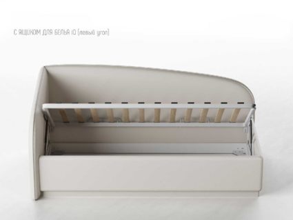 Одним движением руки Вы можете превратить кровать в диван! Закажите вместе с кроватью декоративный чехол на матрас к кровати Amelia из мебельной ткани (чехол приобретается отдельно, стоимость уточняйте у наших менеджеров), уберите постельное бельё в просторный ящик и вуаля — перед вами удобный и компактный угловой диван (особенно актуально для детских комнат или гостиных).