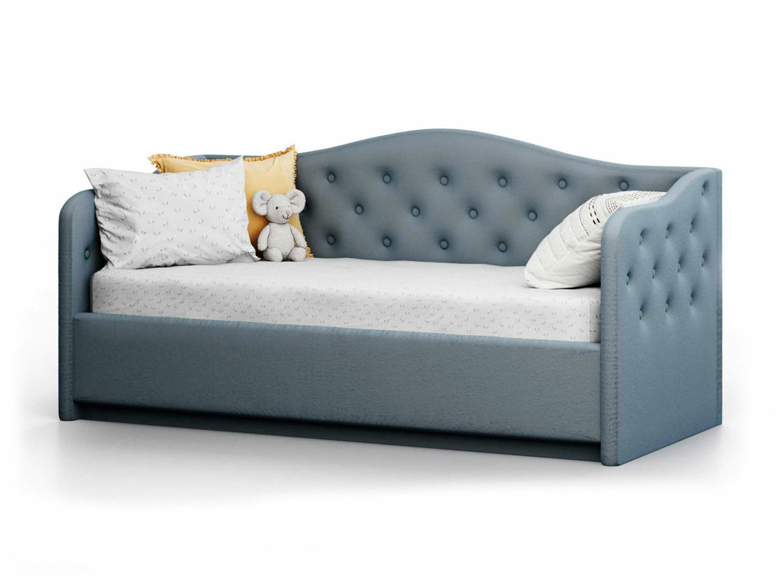 Прекрасная и воздушная кровать-софа Nuvola Elea идеально подойдет как взрослым, так и детям. Кровать выполнена в классическом стиле, изголовье-спинка и боковины кровати имеют плавные изгибы и декорированы изящными пуговицами.