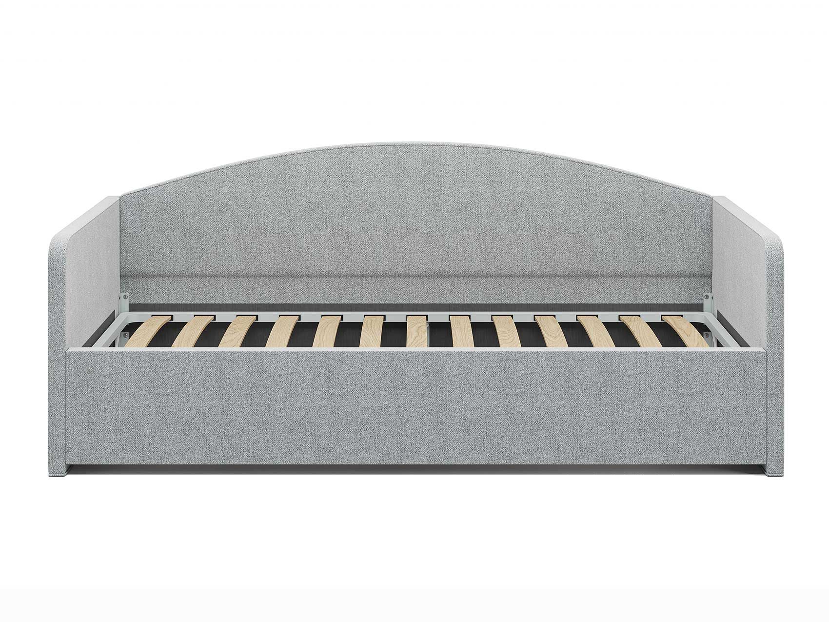 Кровать комплектуется металлическим основанием (без опор), которое имеет 13 рядов встроенных березовых ламелий на каждое спальное место, обеспечивая равномерное распределение нагрузки.