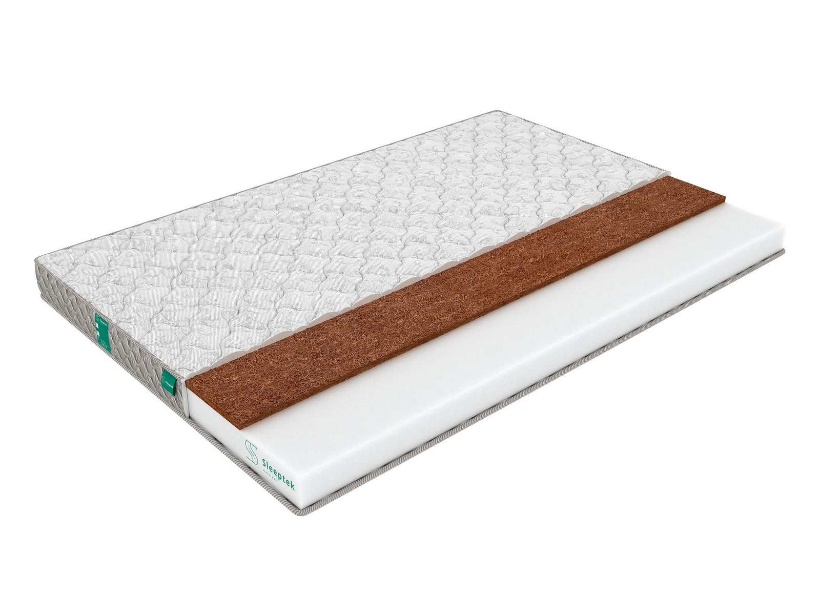 Беспружинная модель Roll CocosFoam 9, поставляющаяся в компактно скрученном рулоне. Характеристики сторон различны – одна сторона средняя, другая жесткая. Основой матраса является плита ортопедической пены 8 см – искусственного материала, придающего матрасу устойчивость и упругость. Жесткая сторона дополнительно проложена прослойкой койры кокоса высотой 1 см.