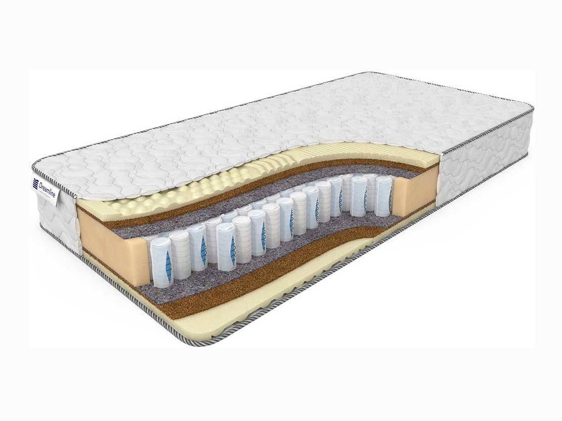 Основой выступает блок «Дуэт», состоящий из 512 независимых пружин на спальное место. Главная особенность данного блока – двойные пружины, вложенные друг в друга. Внутренняя пружина меньше внешней, поэтому на спящего с меньшим весом реагирует внешняя пружина, а на более тяжелого – внутренняя. Конструкция обеспечивает одинаковый ортопедический эффект парам с разницей в весе более 35 кг. Над блоком пружин расположены натуральные наполнители из бикокоса и латекса, которые отделены от металла термовойлоком (представляет собой плотный нетканый материал, обладающий высокой прочностью). За счет того, что наполнители матраса воздухопроницаемые, хорошо сохраняется благоприятный климат спального места.