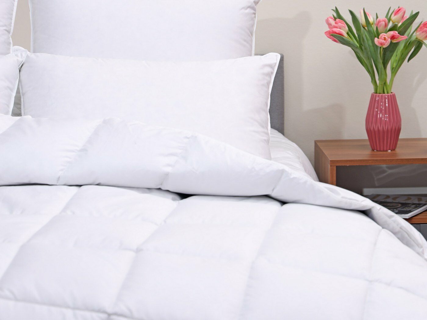 Одеяло кассетного типа гарантируют равномерное распределение пуха. Такая конструкция обеспечивает комфортную температуру сна и идеально подойдёт в любое время года.