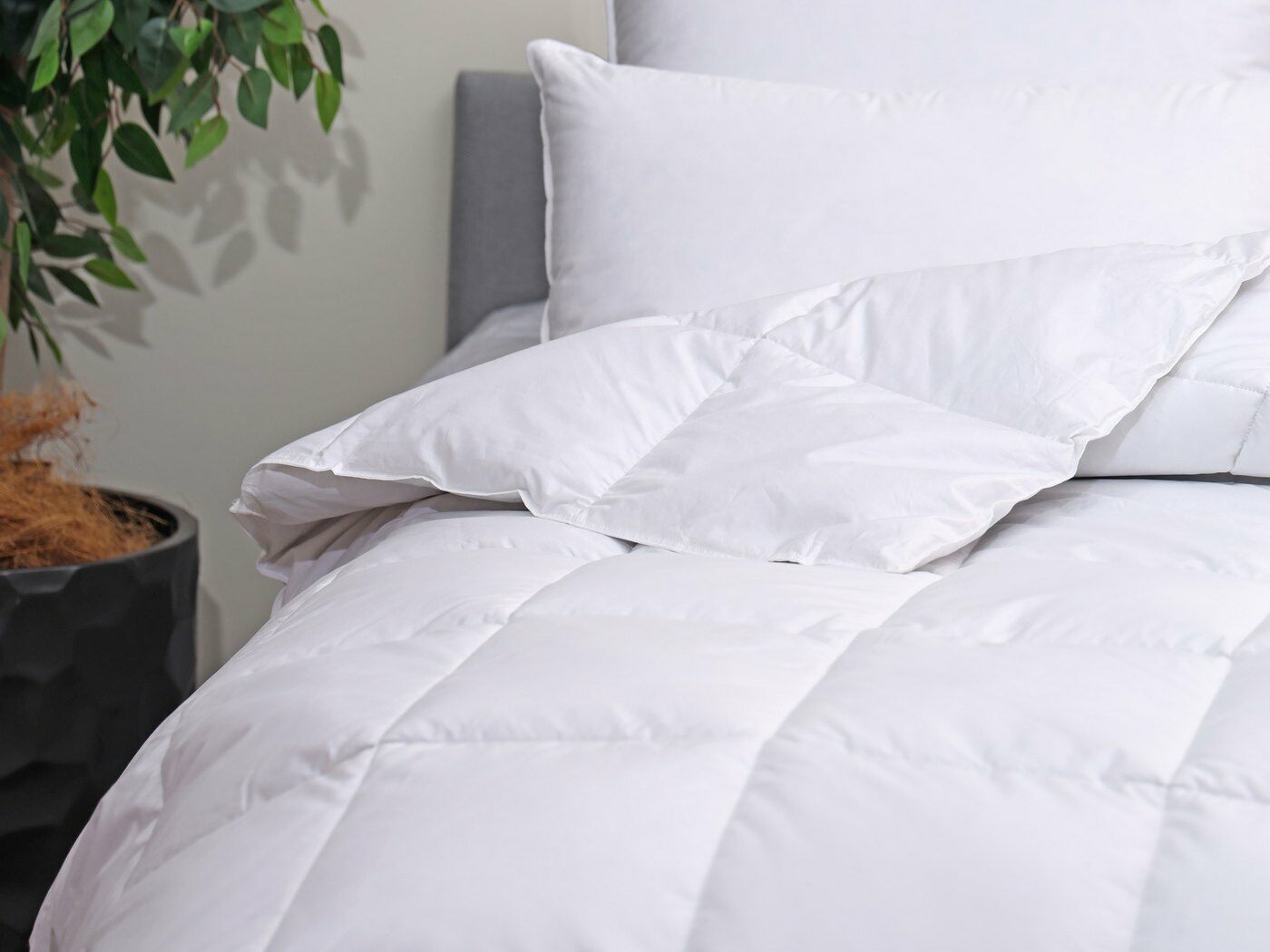 Чехлы подушек и одеял «PURE NEW» изготовлены из органического хлопка – прочного материала, который хорошо удерживает пух. В качестве наполнителя для подушек и одеял коллекции «PURE NEW» используется утиный и гусиный пух, что делает их мягкими и воздушными.