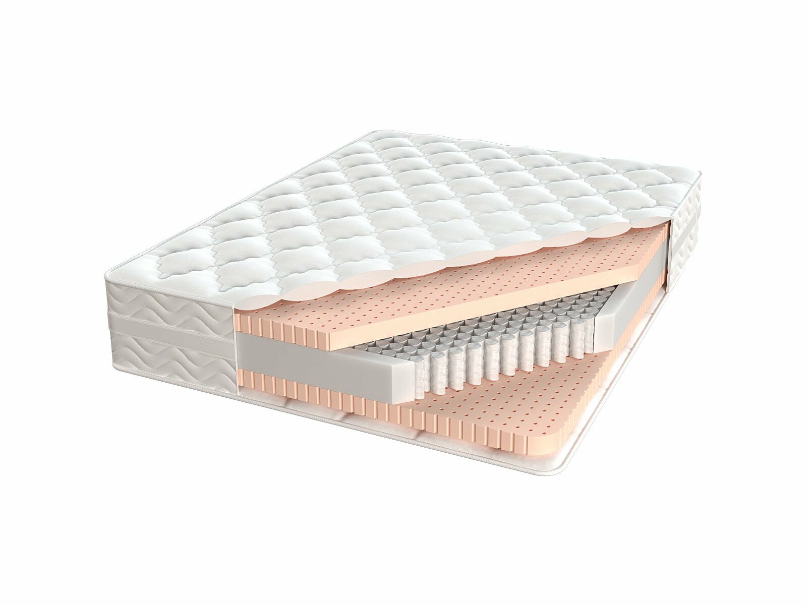 Наличие пяти зон жесткости в блоке помогает равномерно распределить нагрузку тела с учетом анатомических особенностей тела. Зона, с наиболее сильной степенью нагрузки, укреплена пружинами с большим диаметром, расположенными в шахматном порядке. Такое решение обеспечивает пружинному блоку оптимальные ортопедические свойства.
