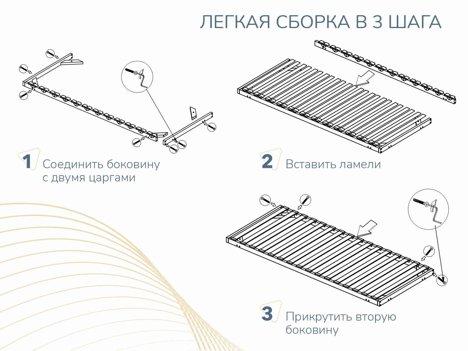 Основание для матраса - клееная фанера из березы сечением 50х25мм. Идеально подходит для матрасов на независимом пружинном блоке, так как благодаря небольшому (около 3 см) расстоянию между латофлексами, не допускается проседание пружин в блоке.