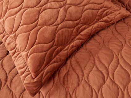Покрывала и наволочки изготовлены из велюра высокой плотности - приятной на ощупь бархатистой ткани с коротким ворсом. Пошив покрывала с кантом, наволочки с ушками 5 см.