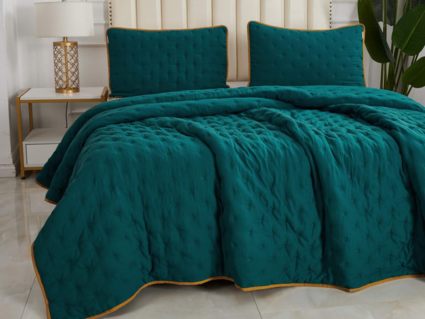 Двусторонние стеганные покрывала Броуди легкие и прочные. В комплект входят покрывало и одна либо две наволочки (50х70 см) из аналогичного материала в зависимости от размера. При желании покрывало можно использовать как легкое одеяло.