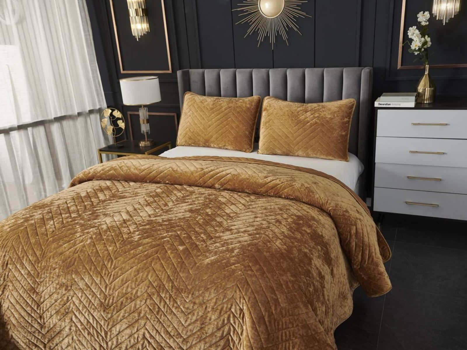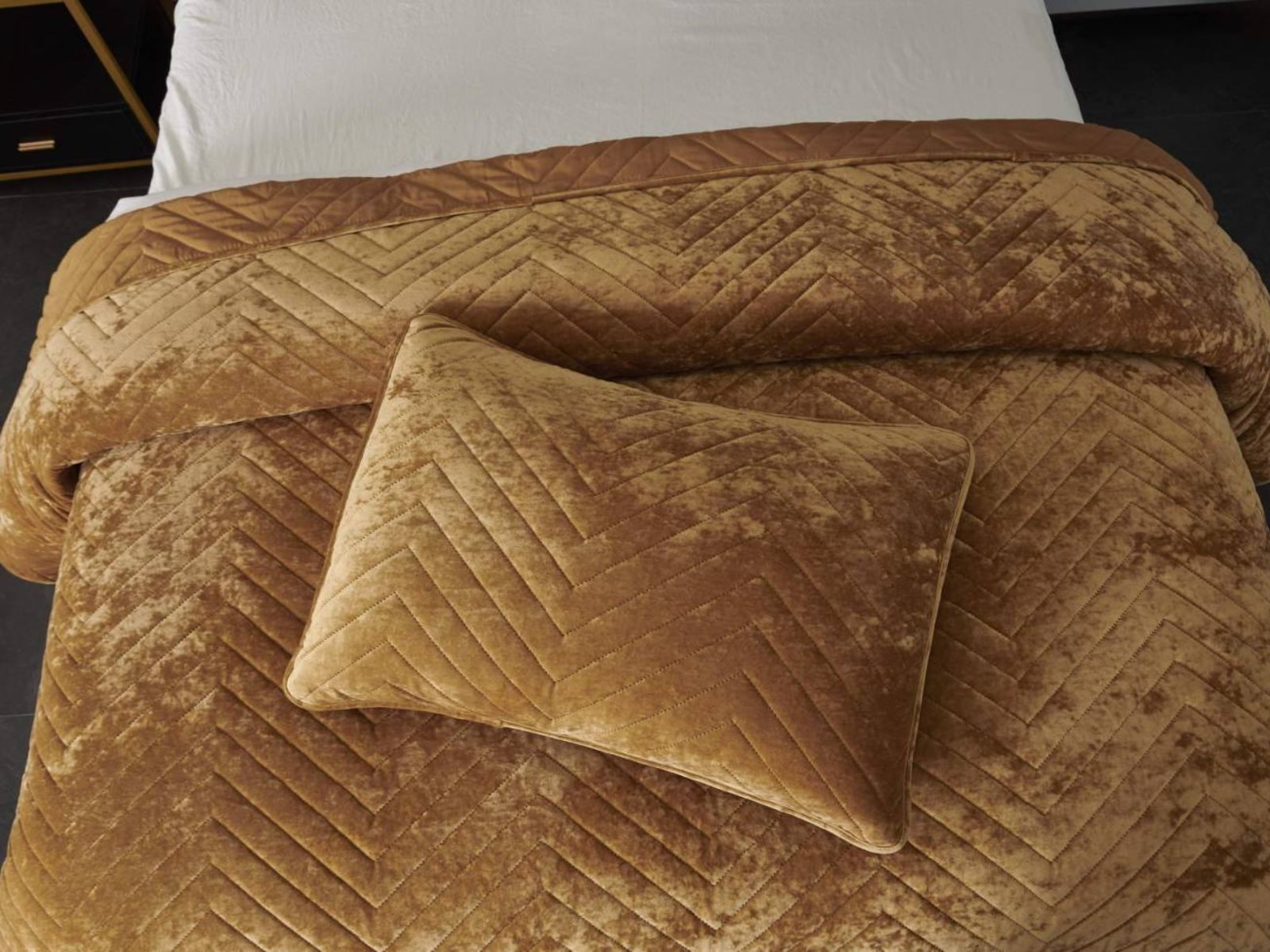 Покрывала Фернанд выглядят как будто сошли с картин, изображающих королевские покои. Бархатную ткань начали изготавливать еще в Средние века, её использовали в оформлении дворцов и изготавливали плащи и головные уборы для знати. Теперь и вы можете прикоснуться к этой роскоши! Бархатная текстура приятная на ощупь, а из-за особого плетения ткани, игра света на ней выглядит благородно. Поэтому покрывало Фернанд создаст необычайно уютную атмосферу в вашей спальне. Цветовая гамма разнообразна и включает восемь благородных оттенков: капучино, бежевый, изумруд, горчичный, терракотовый, пепельная роза, серый, стоун. За покрывалом Фернанд легко ухаживать: стирка при температуре 30 градусов, вручную или в машинке. Важно хорошо просушить изделие! При правильном уходе вещь прослужит долгие годы не потеряв форму и цвет.