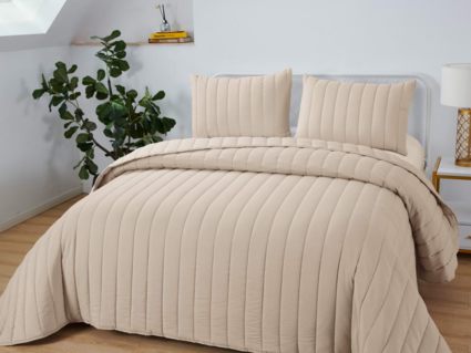 Это не просто практичное и долговечное покрывало. Это универсальное покрывало, которое подойдет к любому интерьеру и разнообразит его. Покрывало можно использовать как легкое одеяло. Оно выполнено в восьми спокойных оттенках: мокко, крем, лиловый, изумруд, розовый, бежевый, серый и пудра. Стеганое покрывало Микаэль прослужит очень долго, оно не полиняет и не вытянется. Стежка придает покрывалам не только прочность, но изысканность и изящество.
